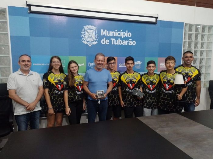 Estudantes do colégio Coração Feliz estiveram na prefeitura nesta quinta-feira (19) para apresentar projetos de robótica que competirão em um evento estadual no próximo mês.