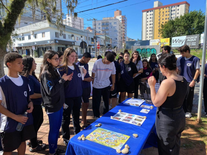 Estudantes do CIEE prestigiaram na quarta-feira o projeto Pra Fora!, realizado na Praça Osvaldo Pinto da Veiga, em Tubarão. Durante a atividade, eles receberam explicações sobre o desenvolvimento do projeto e puderam levar para casa uma arte de sua escolha, oferecida gratuitamente.