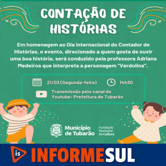 Em homenagem ao Dia Internacional do Contador de Histórias, comemorado no dia 21 deste mês, será realizada mais uma edição online, via Youtube, do projeto “Contação de Histórias”, a partir das 14h30. A apresentação será transmitida diretamente da Sala de Atos do Paço Municipal.
