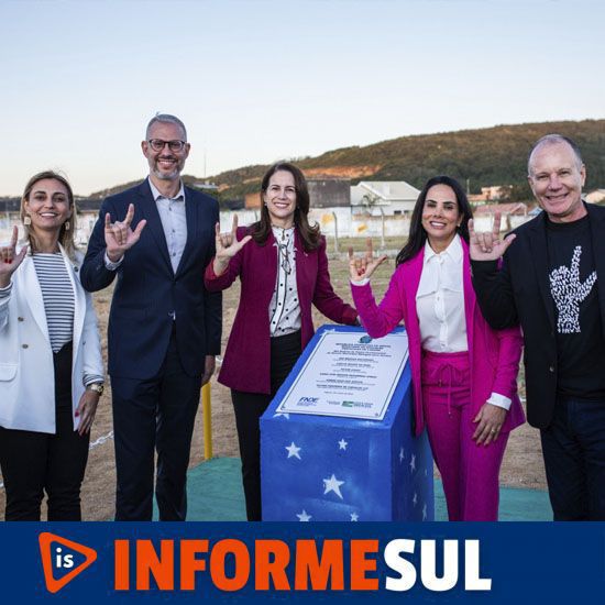 Laguna foi a única cidade em Santa Catarina a receber a Escola Bilíngue, além de outros três estados no Brasil. Foto: PML O Ministro da Educação, Victor Godoy, acompanhado pelas autoridades estaduais e municipais, esteve nesta terça-feira (14) na inauguração do lançamento da Pedra Fundamental da Escola Bilíngue de Surdos em Laguna.