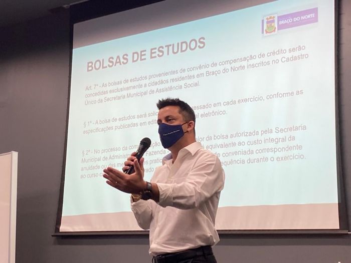 Além disso, segundo ele, é uma forma de devolver aos munícipes os impostos gerados dentro do Município. “O dinheiro pago ao Município através de impostos, ISS neste caso, vai retornar em forma de bolsas de estudos e qualificação, com isso, Braço do Norte formará mais profissionais que atuarão aqui e esses profissionais poderão ser novos professores, novos administradores, secretários municipais, vereadores, empreendedores de sucesso que levarão a nossa cidade a outro patamar, transformando e deixando um legado”.