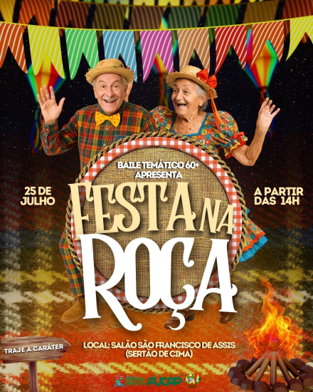 Comunicação Pescaria Brava/SC A Prefeitura de Pescaria Brava, por meio da Secretaria de Assistência Social e Cultura, em parceria com o Instituto FUCAP e com o apoio do Fundo Municipal do Idoso, realiza na próxima sexta-feira (25/07), o segundo baile temático do projeto “60+ em Ação”, com o tema Festa na Roça.