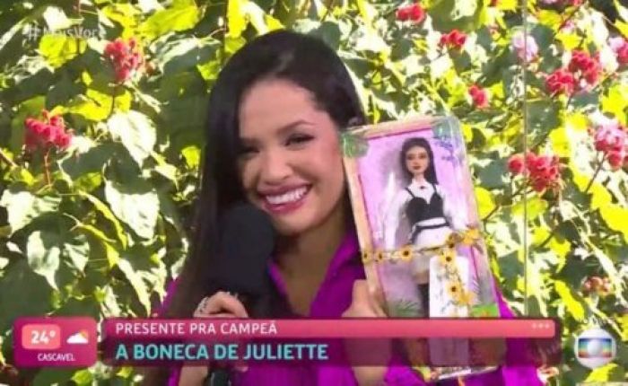 A campeã recebeu o presente na manhã desta quarta-feira (5), durante entrevista ao vivo. Foto: Internet/Divulgação. A vencedora do BBB21, Juliette Freire ganhou uma boneca com suas características na manhã desta quarta-feira, dia 5, ao vivo no Programa Mais Você. A criação foi feita pelas mãos do artista de Criciúma, Vanio Tomé. Ele disse ter demorado cerca de três dias para produzi-la.