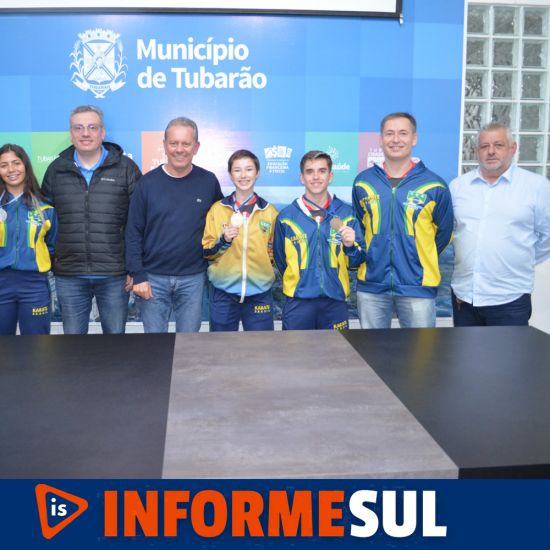 Os atletas foram recebidos pelo prefeito Joares, pelo vice-prefeito Caio Tokarski e pelo presidente da Câmara de Vereadores de Tubarão, Zaga Reis.