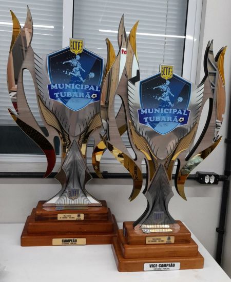 As taças de campeão e vice-campeão vão estar no estádio para entrega aos times. Foto: Divulgação O futebol amador da cidade azul, encerra neste sábado a temporada 2020, com os jogos finais da Taça Cidade de Tubarão 150 anos. As partidas finais ocorrerão na tarde deste sábado, no estádio Domingos Silveira Gonzalez, com os jogos da categoria sub18 e principal.