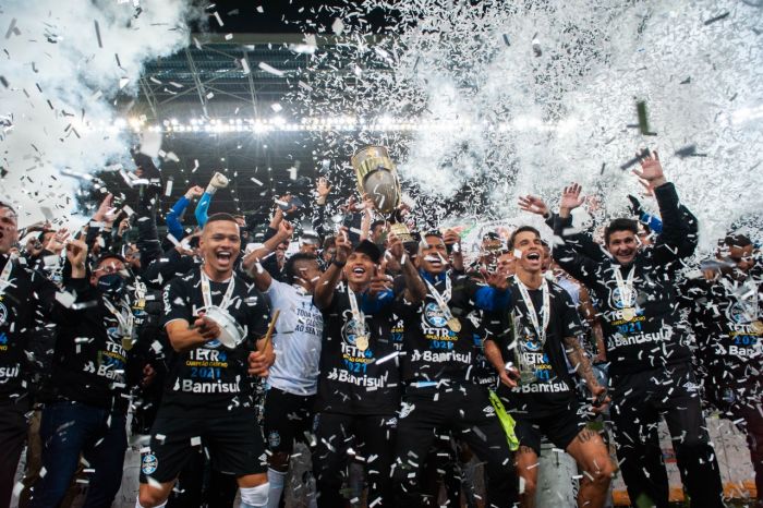 Como o Grêmio venceu a primeira partida, o empate deu o título aos gremistas. Foto: Max Peixoto/FGF O Grêmio empatou hoje contra o Internacional por 1 a 1 e conquistou o tetracampeonato Gaúcho. O GreNal 432 foi disputado na Arena do Grêmio, em Porto Alegre. O placar agregado da final terminou 3 a 2 para os tricolores, já que o confronto de ida tivemos a vitória dos gremistas por 2 a 1.