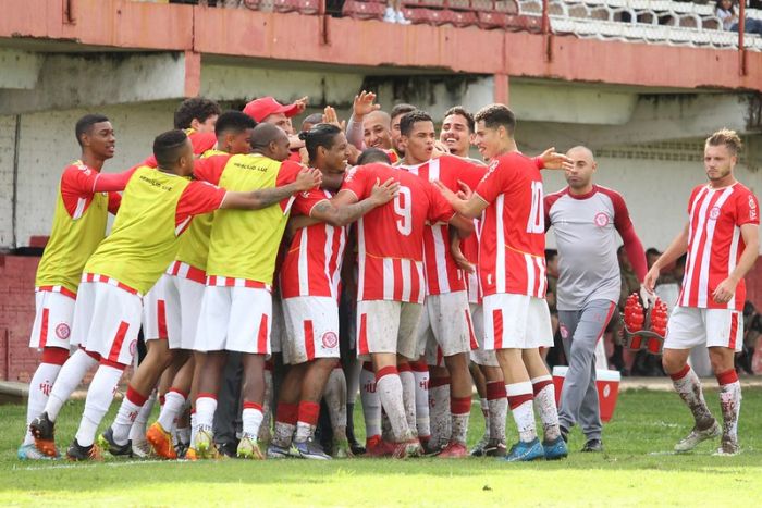 Jogadores comemorando o gol na última partida, que definiu os classificados para a semifinal. Foto: HL O Departamento de Competições da Federação Catarinense de Futebol (FCF) definiu os dias e horários dos jogos semifinais da Copa Santa Catarina 2022. Marcílio Dias, Figueirense, Hercílio Luz e Carlos Renaux continuam na luta pelo título da competição estadual.