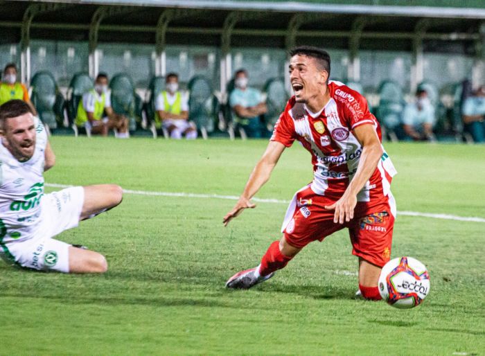 Jogando em casa e defendendo a primeira colocação do campeonato a Chapecoense começou a partida em cima do Hercílio Luz com várias jogadas tentando o gol. Aos 20 minutos do primeiro a equipe do Oeste já tinha 63% de posse de bola, mas não conseguia reverter em gols. A primeira chegada do Leão foi aos 37 minutos quando Levi foi derrubado por Ezequiel na área da Chapecoense e o juiz marcou a penalidade. Em uma cobrança muito ruim Renato Henrique perdeu a chance de abrir o placar.