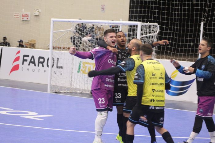 A vibração pelo gol da virada não foi suficiente para manter a vitória no jogo de ontem. Foto: Tubarão Futsal O Tubarão Futsal conquistou mais um ponto pela Liga Futsal. Ontem a noite a equipe chegou a conseguir uma virada, mas acabou empatando com o Foz Cataratas (PR) por 2 x 2. O duelo aconteceu na Arena Multiuso Prefeito Estener Soratto da Silva, em Tubarão.