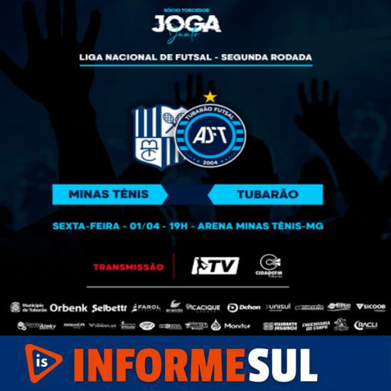 O Tubarão Futsal faz o primeiro jogo fora de casa pela Liga Futsal nesta sexta-feira (01). O duelo será na Arena Minas Tênis Clube, em Belo Horizonte (MG), contra o Minas, às 19 horas e será transmitido pela e pela LNF TV.