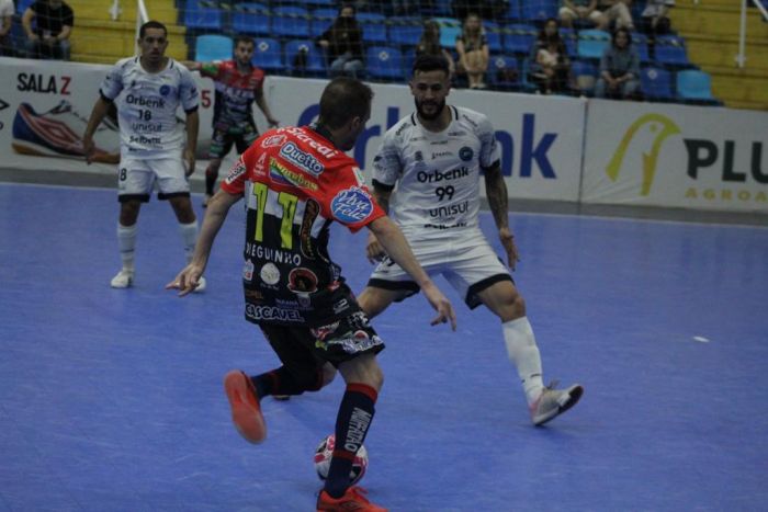 A equipe paranaense tem a segunda melhor campanha da competição. Os visitantes abriram o placar logo no segundo minuto da partida, com Gustavinho. O Tubarão mostrou poder de reação e empatou com Vini Scola aos quatro. O primeiro tempo seguiu com muito equilíbrio e boas oportunidades para ambas as equipes. Dieguinho ampliou para o Cascavel aos 17.