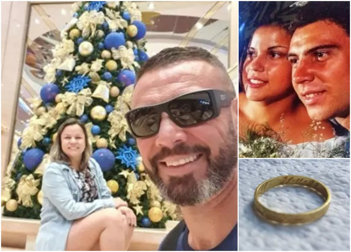 "Dentro da aliança, há o nome do marido e as datas de noivado e casamento. O menino, que já conhecia a história da perda do anel, mostrou o objeto achado à família, que entrou em contato com Renato. 'Vieram devolver, vimos que era a aliança', declarou Regiane.