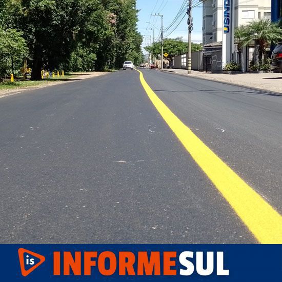 Concluídos os trabalhos de revitalização da pavimentação asfáltica, a avenida Getúlio Vargas, que liga Tubarão a Capivari de Baixo, recebeu nesta quinta-feira (10) a nova sinalização horizontal.