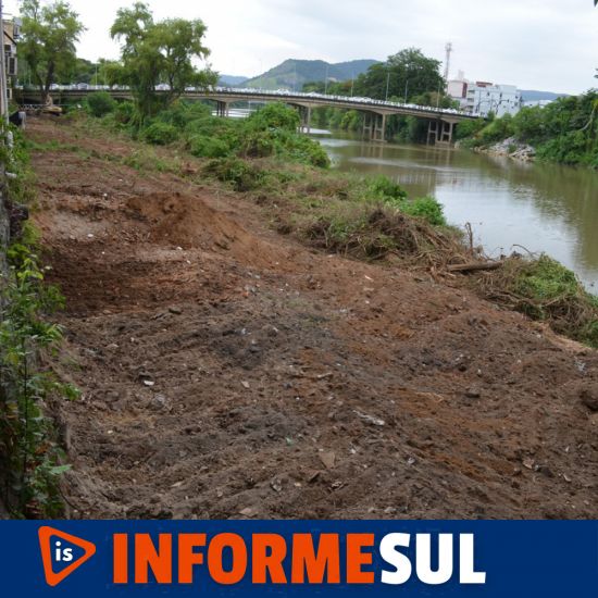 A remoção da vegetação é feita por uma escavadeira hidráulica. Com a limpeza total do espaço, incluindo entulho, a Araújo Construções inicia as medições e as demarcações para fixação das fundações e das estacas. Foto: PMT A área onde será construído o deck da beira rio, nos fundos do casario da rua Lauro Müller, recebe nesta quarta-feira (23) os trabalhos de limpeza que vão permitir o início da obra.