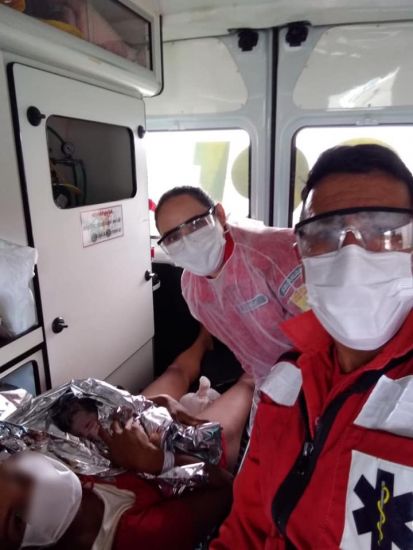 O parto foi realizado pelos bombeiros voluntários dentro da ambulância. Foto: Bombeiros Voluntários O dia hoje foi um pouco diferente para os bombeiros voluntários, Júlio e Aline. Eles tiveram a oportunidade de de trazer a vida o pequeno Emanuel. Foi por volta das 11h28min quando a ambulância dos Bombeiros Voluntários de Jaguaruna foram acionados para o atendimento de uma gestante de 39 semanas e dois dias.