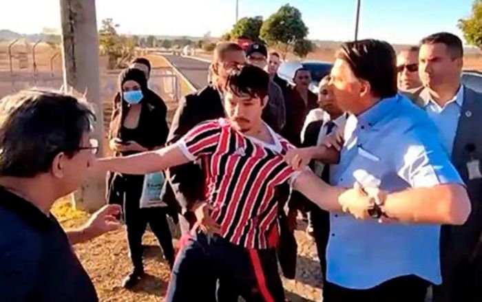 As imagens foram feitas pelo cinegrafista Emerson Soares, da TV Globo, e publicadas no g1. O youtuber Wilker Leão, que faz vídeos provocando bolsonaristas e petistas, aparece questionando o presidente sobre decisões do governo federal.