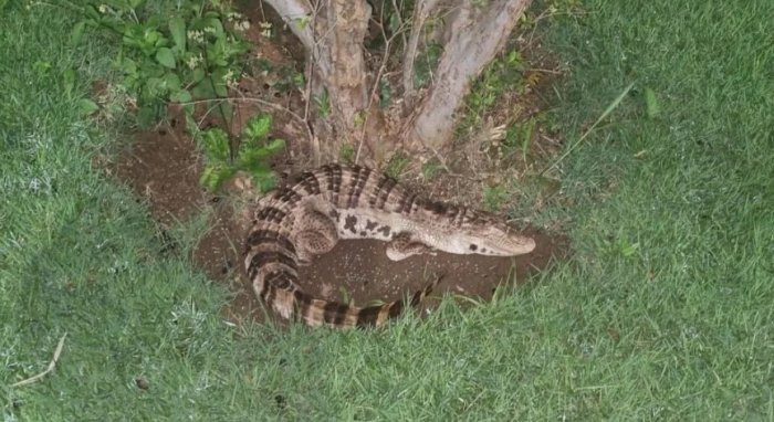 Por volta das 3h54, funcionários do condomínio, durante uma ronda de rotina, avistaram o que parecia ser um jacaré de aproximadamente um metro de comprimento no jardim de uma das residências. Diante da situação, acionaram imediatamente a Polícia Ambiental e os bombeiros.