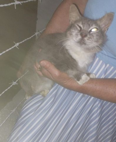 Enquanto aguardava a chegada dos bombeiros, ela permaneceu no local segurando o gato e garantindo que ele não se ferisse ainda mais.
