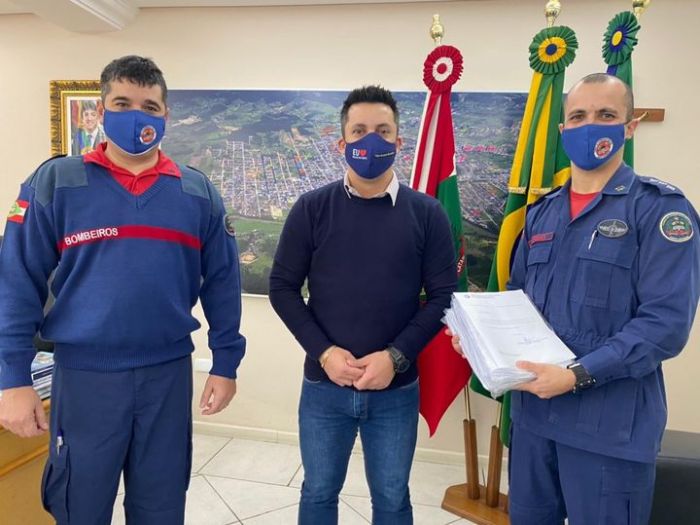 O prefeito Beto aproveitou a oportunidade para, mais uma vez, reafirmar o compromisso de parceria com o Corpo de Bombeiros de Braço do Norte. Foto: Divulgação Já está na Prefeitura o projeto para a construção da segunda etapa, no valor de R$ 1.518.000,00, do quartel do Corpo de Bombeiros de Braço do Norte. O prefeito, Beto Kuerten Marcelino, que recebeu a documentação das mãos do comandante capitão BM Marcos Leandro Marques, garantiu que o Município complementará os R$ 518 mil faltantes para a conclusão da obra.