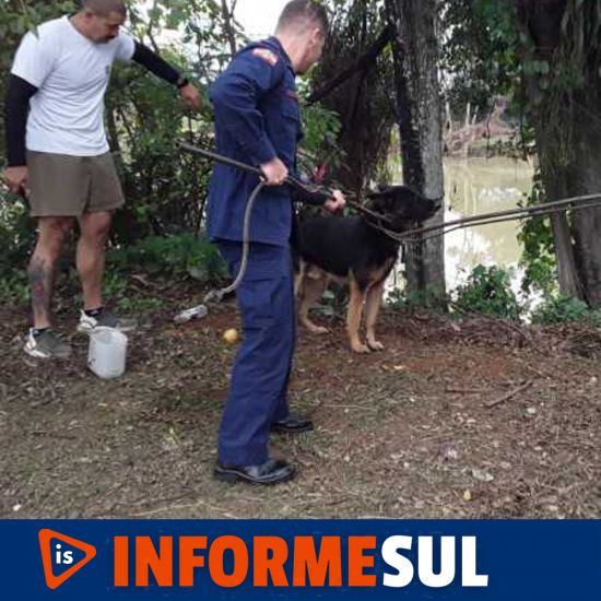 Através de denúncias, a Fundação Municipal de Meio Ambiente, acompanhada do Corpo de Bombeiros e da Polícia Militar, realizaram o resgate de um cachorro, em frente à Unisul, nesta quarta-feira (1).