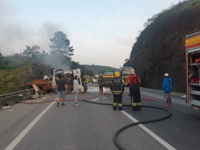 Até o momento não há mais detalhes sobre a dinâmica do acidente e a identidade das vítimas. A carga do caminhão pegou fogo e os bombeiros realizaram a contenção das chamas. Além da equipe de resgate da empresa que administra a rodovia, o Corpo de Bombeiros e a Policia Rodoviária Federal (PRF) auxiliam na ocorrência. Existe a possibilidade de mais vítimas e as equipes de socorro seguiam no local até as 11 horas.