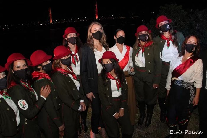 A governadora em exercício de Santa Catarina, Daniela Cristina Reinehr, e os guardiões de Anita, na live de religação da iluminação da Ponte Anita Garibaldi. Foto:Divulgação/CulturAnita O Instituto Cultural Anita Garibaldi (CulturAnita) confirmou que a Cavalgada do Bicentenário ganhou uma nova data para ser realizada. O ato faz parte da programação mundial das celebrações dos 200 anos do nascimento da Heroína dos Dois Mundos e vai acontecer no dia 22 de maio. Além da participação de grupos de cavalaria do Rio Grande do Sul e de Santa Catarina, a governadora em exercício de Santa Catarina, Daniela Cristina Reinehr, também estará presente e fará o percurso da cavalgada.
