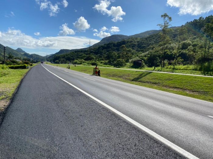 Palhoça / Paulo Lopes: correções emergenciais localizadas no pavimento entre os kms 245 e 247 – pista sentido Sul. Entre 7:00h e 17h
