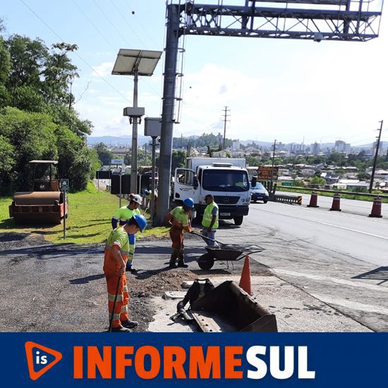 Içara / Criciúma: correções emergenciais localizadas no pavimento entre os kms 389 e 391 – pista sentido sul. Entre 7:00h e 17h