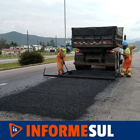Paulo Lopes / Imbituba: correções emergenciais localizadas no pavimento entre os kms 266 e 268 – pista sentido norte. Entre 7:00h e 17h