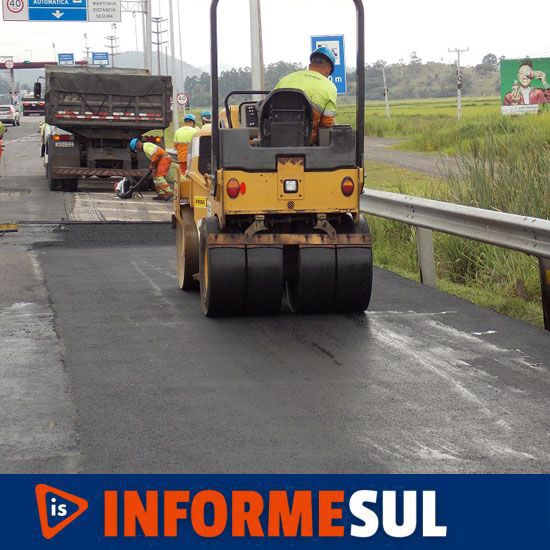 Imbituba: correções emergenciais localizadas no pavimento entre os kms (268 e 270) e (289 e 291) – pista sentido norte. Entre 7:00h e 17h