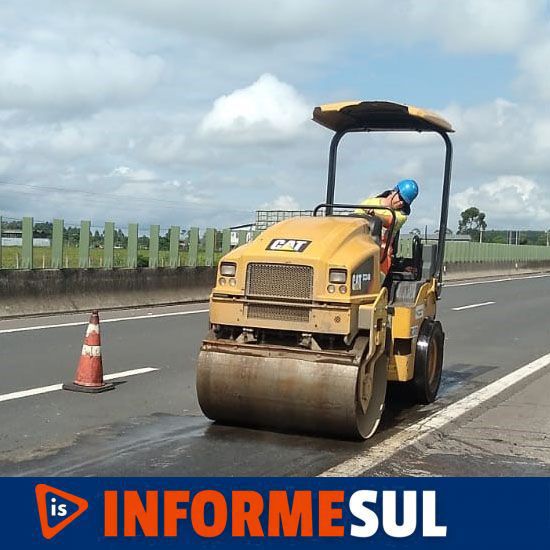Imbituba: correções emergenciais localizadas no pavimento entre os kms (268 e 270) – pista sentido sul; (290 e 292) – pista sentido norte e no km (271) – no acostamento sentido sul. Entre 7:00h e 17h.
