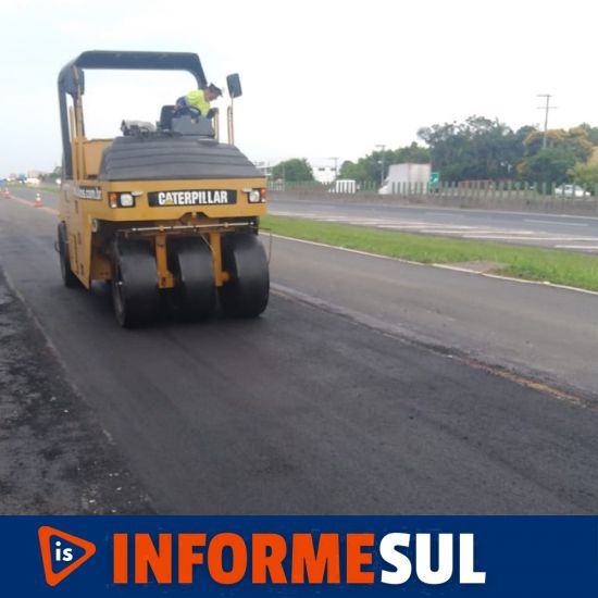 Imbituba: correções emergenciais localizadas no pavimento entre os kms (292 e 294) – pista sentido norte e no km (271) – no acostamento sentido sul. Entre 7:00h e 17h.