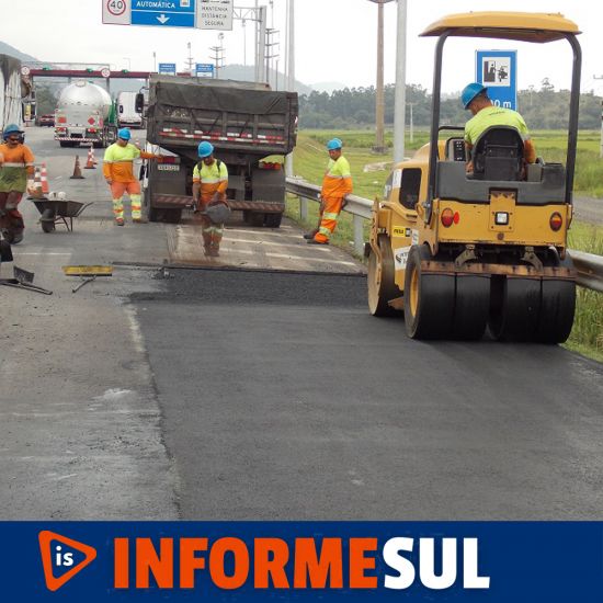 Laguna / Pescaria Brava: correções emergenciais localizadas no pavimento entre os kms (315 e 317) – pista sentido norte. Entre 7:00h e 17h.