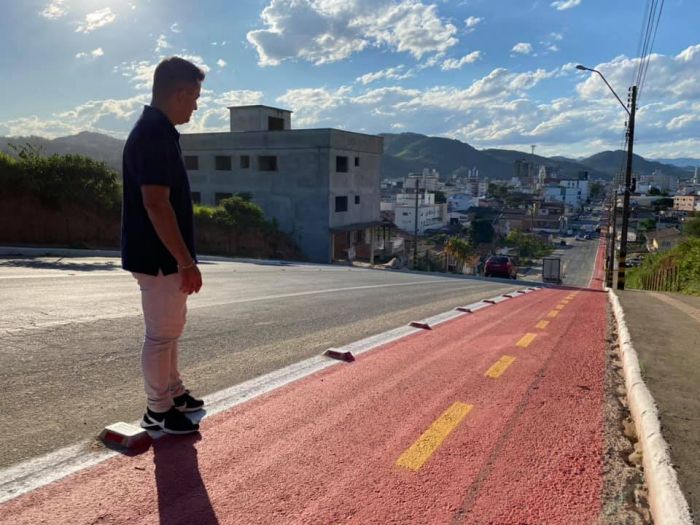 De acordo com o prefeito, Beto Kuerten Marcelino, uma das metas estipuladas pela gestão para 2021 era acentuar o embelezamento, limpeza e sinalizações. Foto: PMBN A pintura da ciclofaixa da Avenida Jorge Lacerda, em Braço do Norte, que corta a cidade, foi reforçada esta semana. A ação faz parte de um pacote que está sendo realizado pela Prefeitura Municipal.