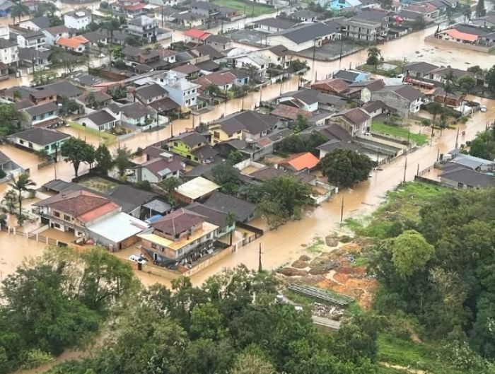Na zona Norte e na zona Oeste de Joinville, rios transbordaram e atingiram as casas. Foto: PMJ Com a passagem do ciclone extratropical, algumas cidades de Santa Catarina registraram, em 24 horas, mais chuva do que a média esperada para todo o mês de agosto. Nesse período, os maiores acumulados, conforme a Defesa Civil, foram nos municípios de Schroeder, no Norte, Florianópolis e São josé do Cerrito, na Serra catarinense.