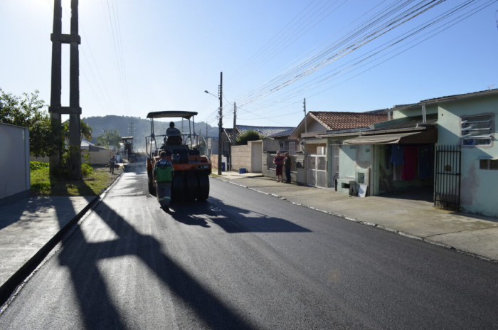 As obras de pavimentação asfáltica na Rua Rubens Faraco, no bairro Vila Esperança, foram concluídas nesta terça-feira (09). A capa asfáltica foi aplicada no trecho entre as ruas Januário Corrêa Bitencourt (marginal da BR-101) e João Fernandes Lima.