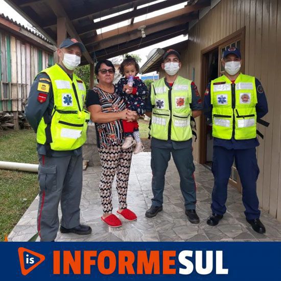 Uma menina de dois anos foi salva por bombeiros militares após se engasgar com uma bala, na manhã deste domingo (3), em Lebon Régis (SC). O caso ocorreu por volta das 10 horas.