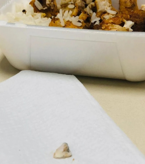 Funcionária Descobre Objeto na Refeição; Dentista Alega Não Ser Humano