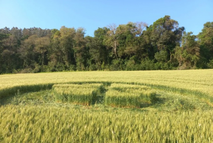 Um enigmático desenho surgiu em uma plantação de trigo na cidade de Ipuaçu, localizada no Oeste de Santa Catarina, nesta sexta-feira (22). O município é conhecido como a "capital nacional dos agroglifos".
