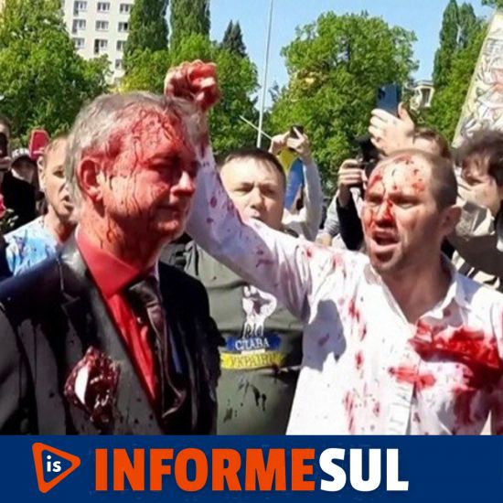 O embaixador participava de um ato no cemitério de soldados soviéticos em Varsóvia, mas manifestantes bloquearam a passagem de Andreev e lançaram a tinta vermelha contra seu rosto, em protesto contra os ataques de seu país na Ucrânia.