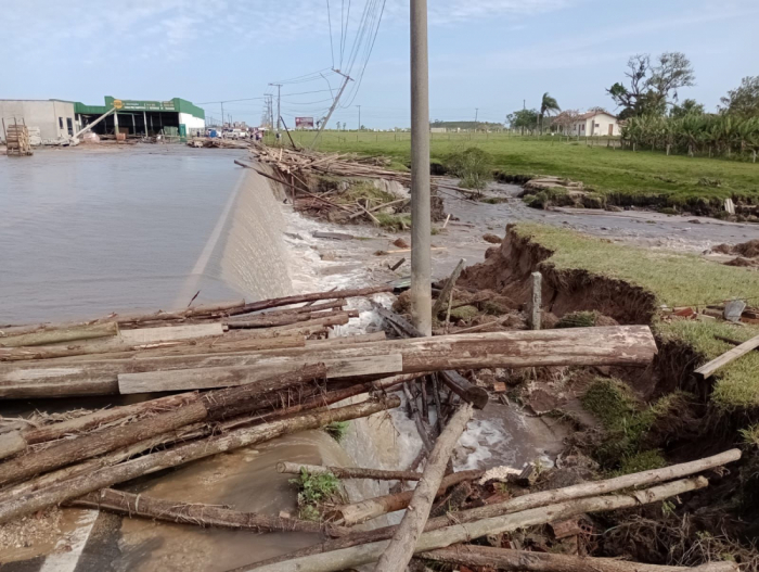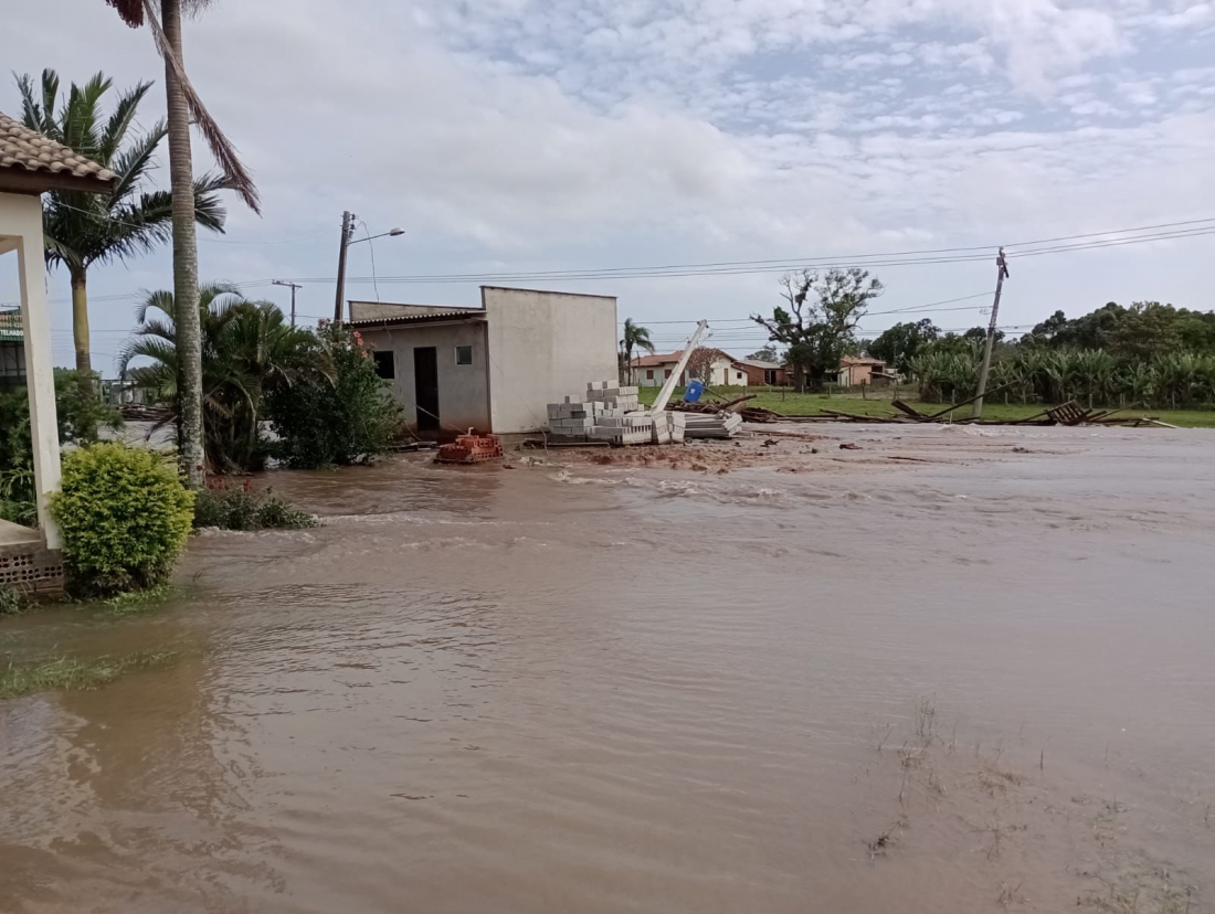 O rompimento de dois diques de areia na localidade de Olho d’Água, em Jaguaruna, desencadeou uma série de problemas neste domingo (26).