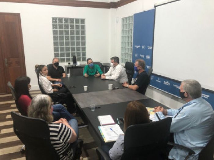 Também foi solicitado apoio ao serviço de transporte que a APAE presta voluntariamente aos educandos. Foto: PMT Diretores da APAE (Associação de Pais e Amigos dos Excepcionais) de Tubarão estiveram reunidos com o prefeito Joares Ponticelli, com o diretor-presidente da Fundação Municipal de Saúde Daisson Trevisol e com membros da equipe administrativa, para tratar dos convênios com a instituição para o próximo ano.