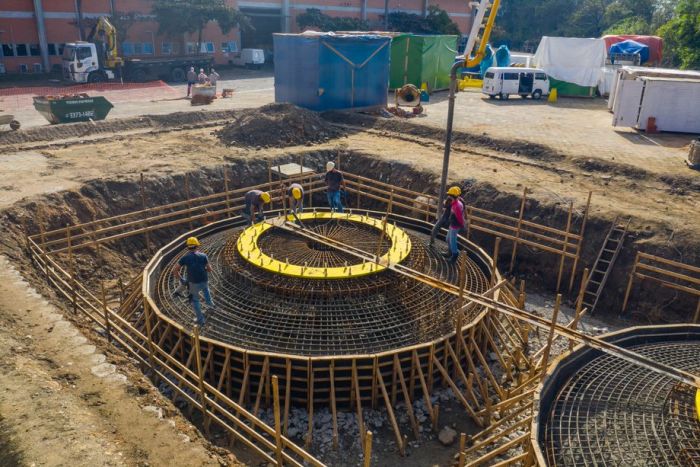 A fabricação dos segmentos da torre de concreto com mais de 1.100 toneladas de aço e concreto foi realizada pela WEG no próprio local de instalação do aerogerador.