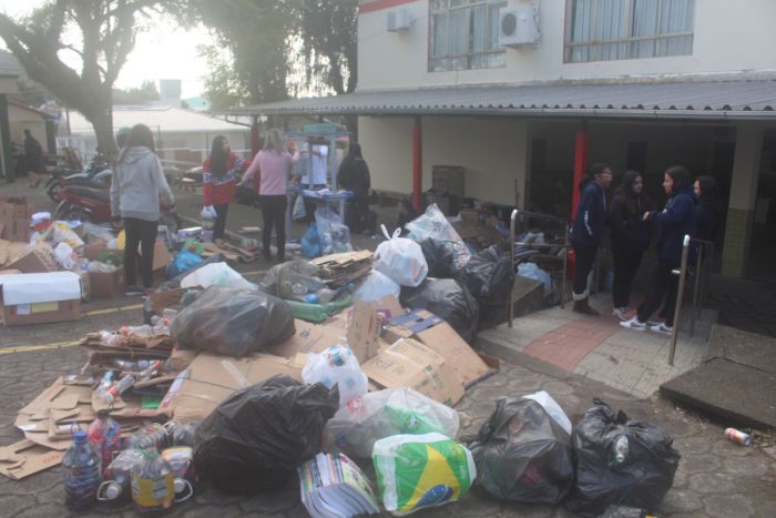Tudo vai ser vendido e o dinheiro será revertido em melhorias para a escola. Foto: Divulgação A bióloga Vanessa Pacheco, que integra o projeto Encantos do Meio Ambiente –EMA e a coordenadora do projeto, a agrônoma Mylena de Medeiros mal conseguiam acreditar no que viram na última sexta-feira (03) ao chegarem à E.E.B Otto Feuershuette, em Capivari de Baixo. Montes e mais montes de resíduos espalhados pelo pátio, escadaria e corredores.