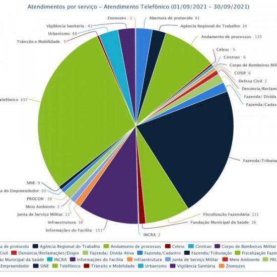 Por sua vez, foram 1.498 os atendimentos realizados pelo órgão pelo telefone, com a solicitação de números de contatos de outras instituições sendo o serviço mais acessado, com 437 registros, seguido do Incra (2), Fundação Municipal de Saúde (16), Tributação/Fazenda (326), Fiscalização Fazendária (111), Cadastro/Fazenda (24), Dívida Ativa/Fazenda (23), Defesa Civil (2), Cosip (6), Celesc (5), Corpo de Bombeiros Militar (1), Ciretran (6), andamento de processos (135), Agência Regional do Trabalho (34), abertura de protocolo (41), UVZ (1), Vigilância Sanitária (43), Urbanismo (48), Trânsito e Mobilidade (5), SINE (9), Sala do Empreendedor (10), Procon (20), Meio Ambiente (2), Junta de Serviço Militar (13), Infraestrutura (16), informações gerais do Facilita (151), além de 11 registros de denúncias, reclamações e/ou elogios.