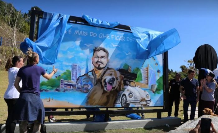 Foi inaugurado na manhã deste sábado (8) o memorial em homenagem ao viajante Jesse Koz, e o seu cão, Shurastey, mortos em acidente de carro nos Estados Unidos em maio deste ano. A cerimônia em Balneário Camboriú, no Litoral Norte, contou com a presença de familiares do influenciador, amigos e fãs da dupla.
