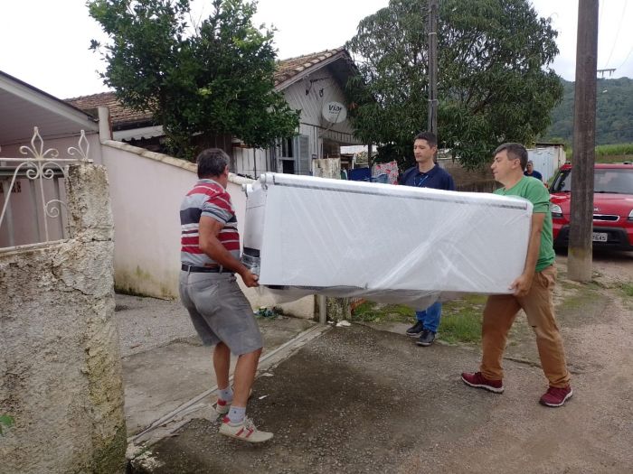 Famílias tubaronenses, cadastradas no programa de eficiência energética, começaram a receber novas geladeiras em substituição aos antigos eletrodomésticos. Nesta segunda-feira (5), o prefeito Joares Ponticelli acompanhou uma entrega simbólica a uma moradora do bairro São João Margem Esquerda.