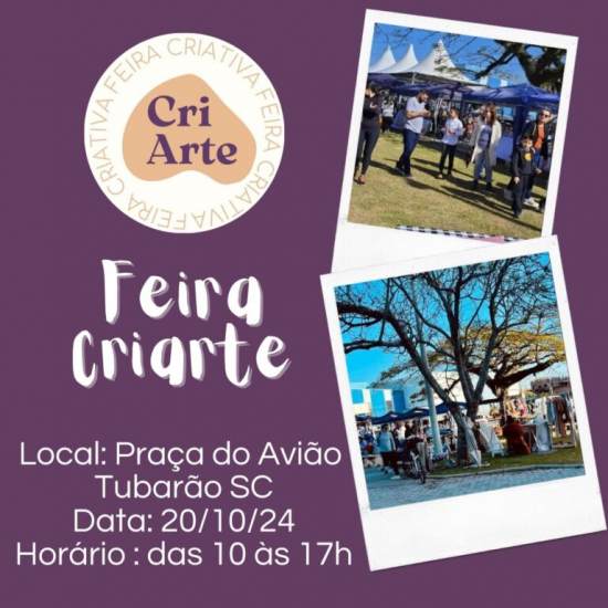 A próxima edição da Criarte Feira Criativa de Tubarão será realizada neste domingo, dia 20, na Praça Memorial Aeroporto Anita Garibaldi, das 10h às 17h. O evento busca promover e valorizar o trabalho de empreendedores locais, oferecendo ao público uma diversidade de produtos e serviços.