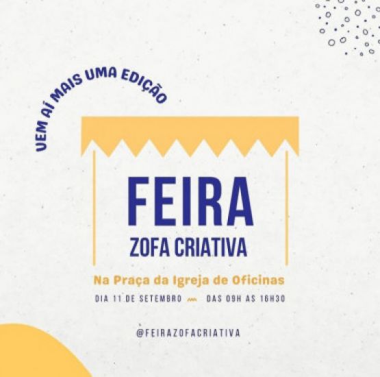 O evento acontece na praça da igreja São José Operário (Oficinas), das 9 às 16h30min. Foto: Divulgação A quarta edição da Feira Zofa Criativa, neste sábado, contará com diversas atrações, entre barracas de artesanatos e de alimentos caseiros, para o entretenimento dos visitantes. O evento acontece na praça da igreja São José Operário (Oficinas), das 9 às 16h30min.