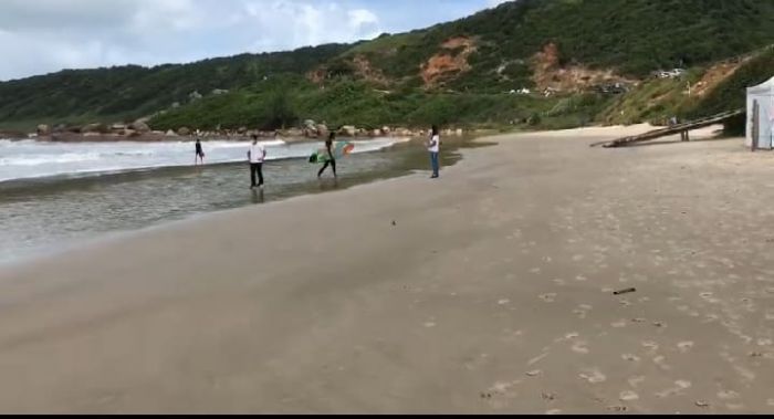 Durante a vistoria, não foram identificamos turistas ou ambulantes na orla. Nem mesmo na região da Praia do Rosa houve o registro de aglomeração, mesmo com denúncias recebidas pela Vigilância em Saúde.